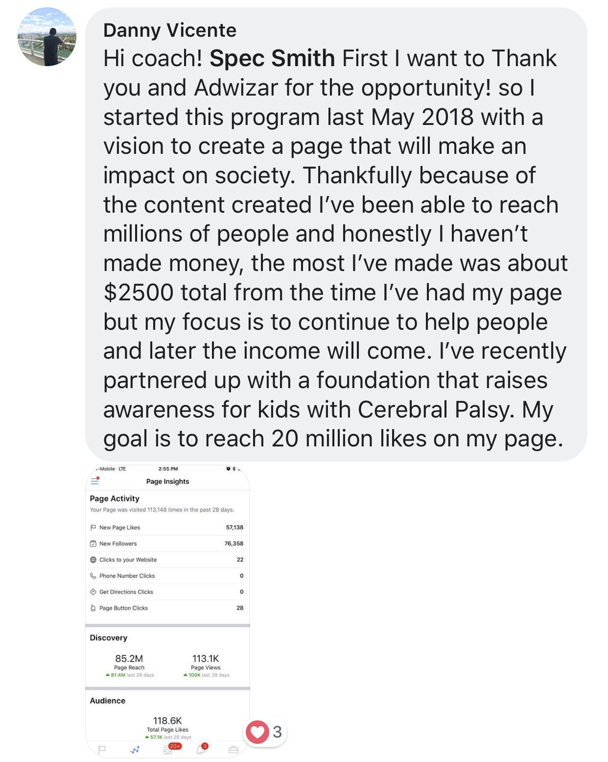 “I started the Academy program at the beginning of the year. All you need is one video to go viral. I posted a video and got 13 million people reached with 5 million views. The most I’ve made was about $2,500 total from the time I’ve had my page.”